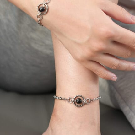 Every glance at her wrist reminds her who she belongs to. Crafted in stainless steel, adorned with elegant stones, this locking bracelet holds a private promise — one that never leaves her side.