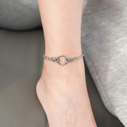 The Trinity of Obedience – Triple O-Ring Submissive Anklet with Black Pearl – Lockable Devotion Cuff