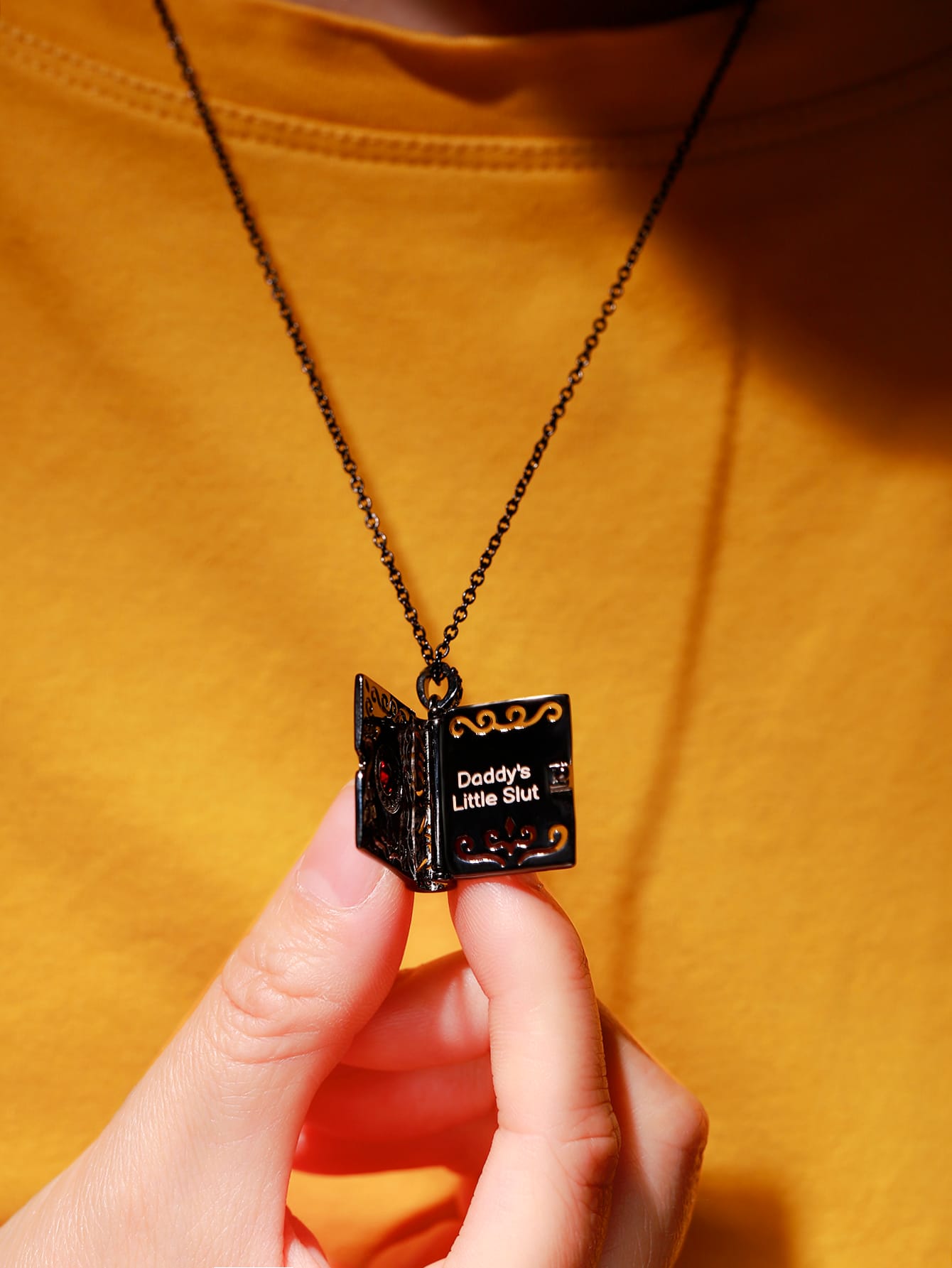 Daddy’s Little Slut Necklace – Gothic Booklet Pendant with Hidden Message