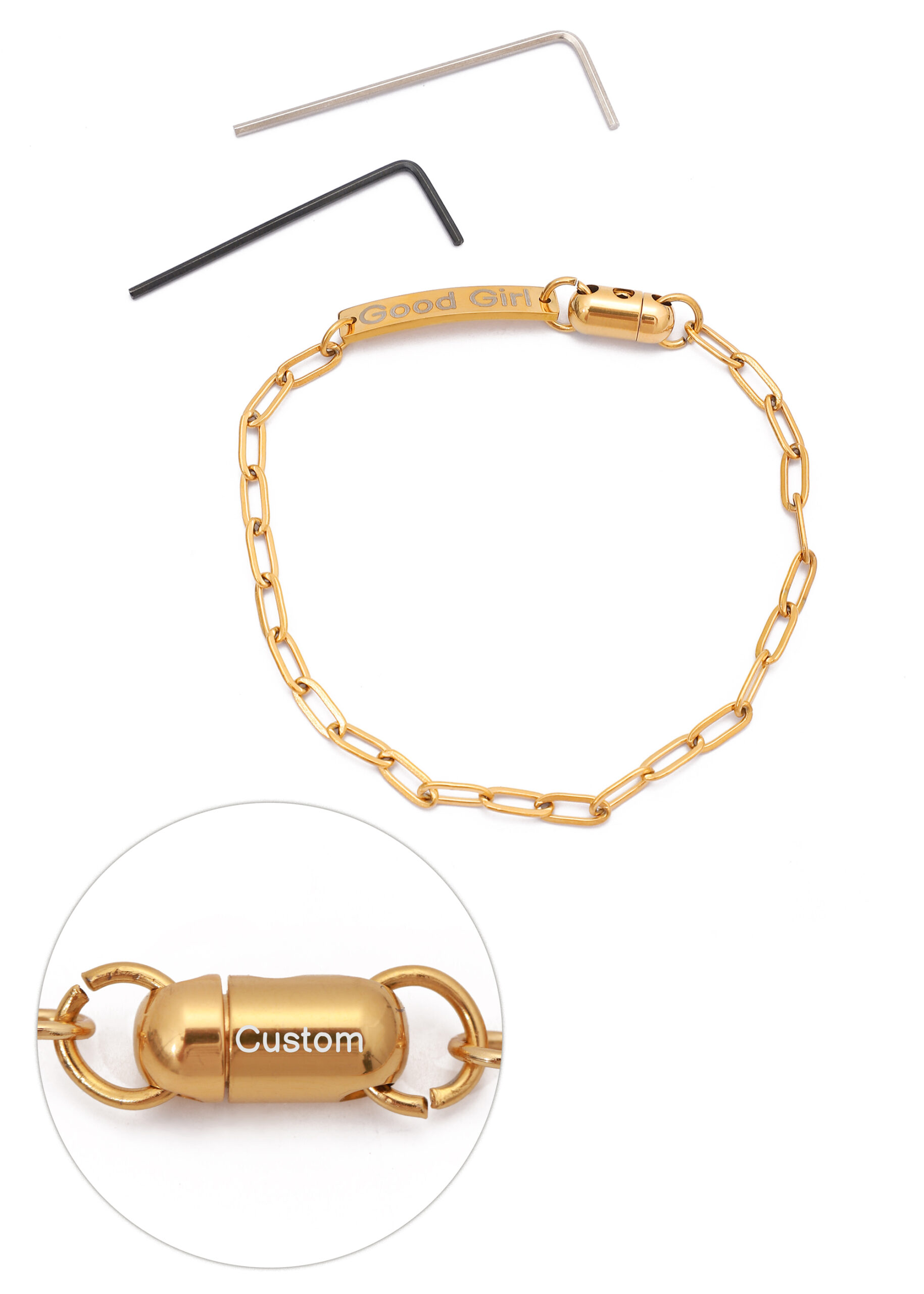Many submissives choose this anklet as a Good Girl anklet, letting the engraved message act as a reinforcement of praise, devotion, or obedience. The engraved words can be seen by the wearer alone or revealed only to those meant to understand. This creates a subtle balance between discretion in public and meaning in private—a perfect expression of engraved submissive jewelry.