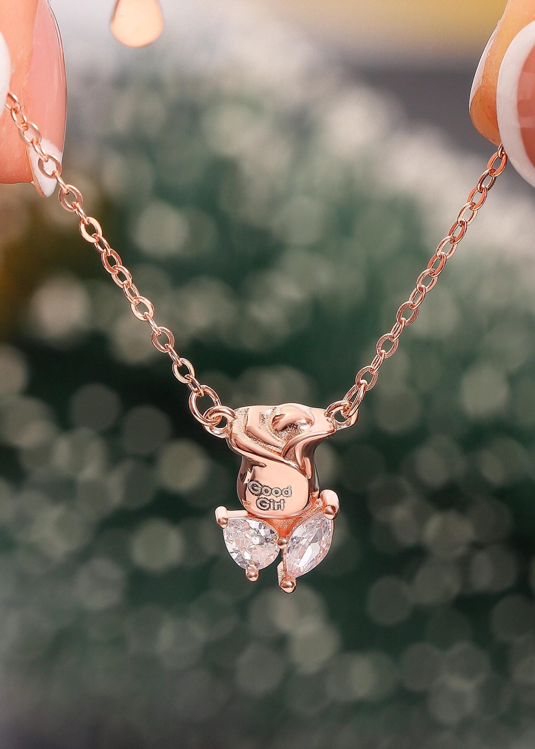 You don’t have to kneel to be claimed. Sometimes, you shine instead. This good girl submissive pendant is made to celebrate soft obedience and quiet devotion. Crafted in sterling silver with rose gold plating, the pendant curves gently, like a bow tied in offering. Two delicate teardrop stones sit beneath, creating a shape that’s both feminine and meaningful — symbolic of openness, submission, and praise.