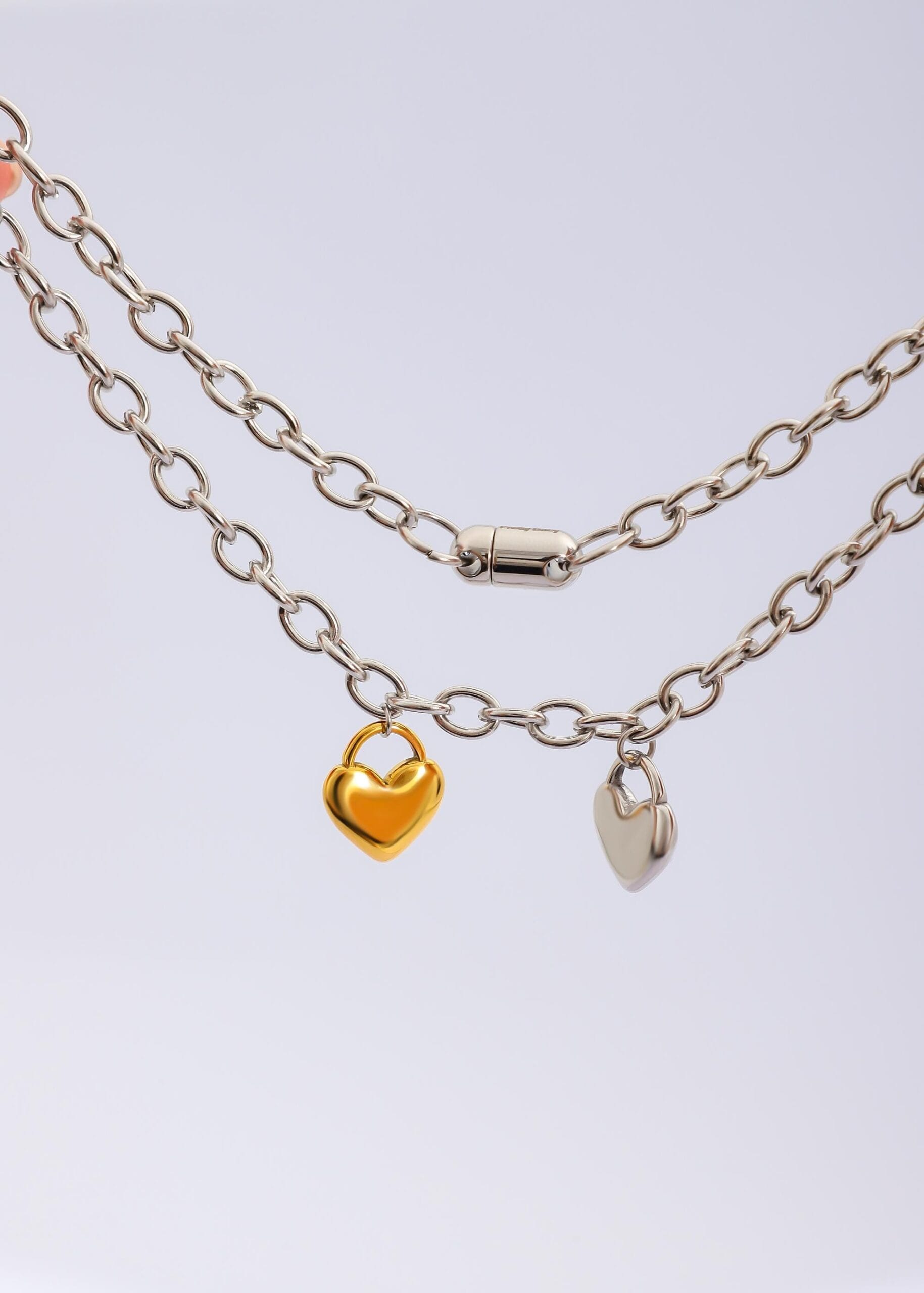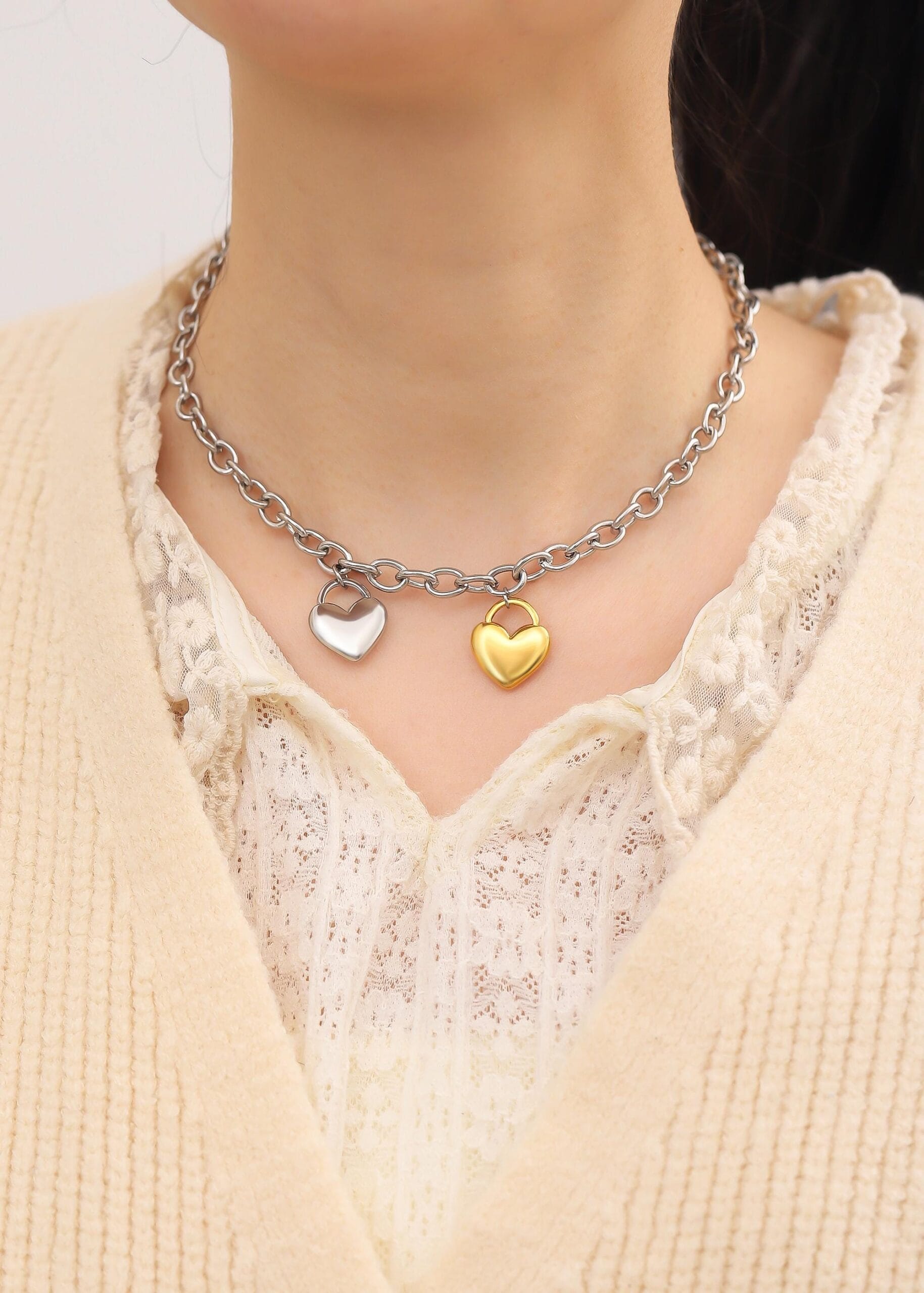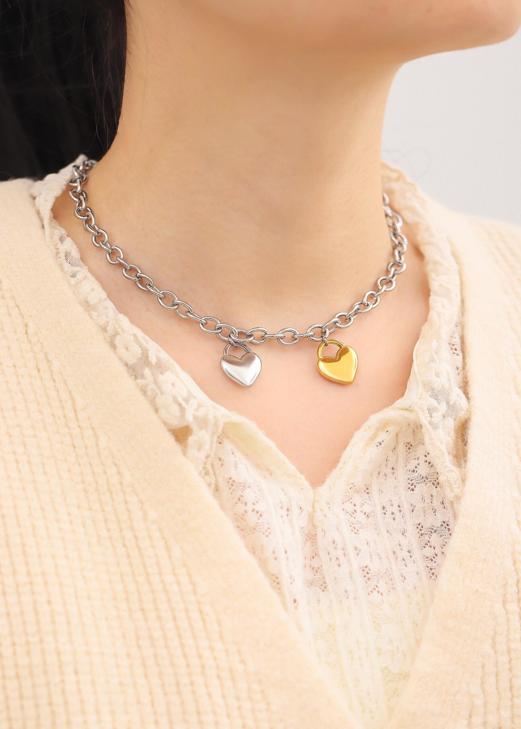 Lockable Submissive Collar – Dual Heart Mixed Metals BDSM Choker